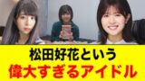 松田好花は日向坂46を色んな形で広めてくれた。功労者です。常に、1番にグループのことを考えていた。そんなメンバーが卒業した日向坂46はこれからが大変です。松田好花の穴を埋めるのは簡単じゃないけど、全員で同じ方向に進めばきっと大丈夫だと思います。
