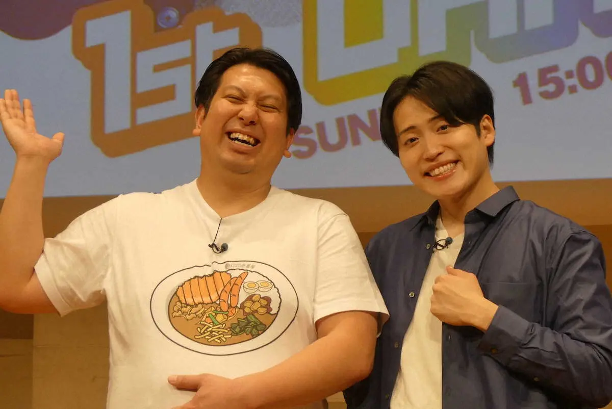 お笑いコンビ「レインボー」のジャンボたかお(36)と池田直人(32)が1日、都内でパーソナリティーを務めるTOKYO FM「月曜喋るズ『エフエムレインボー』」(月曜後8・00)のイベントを行った。